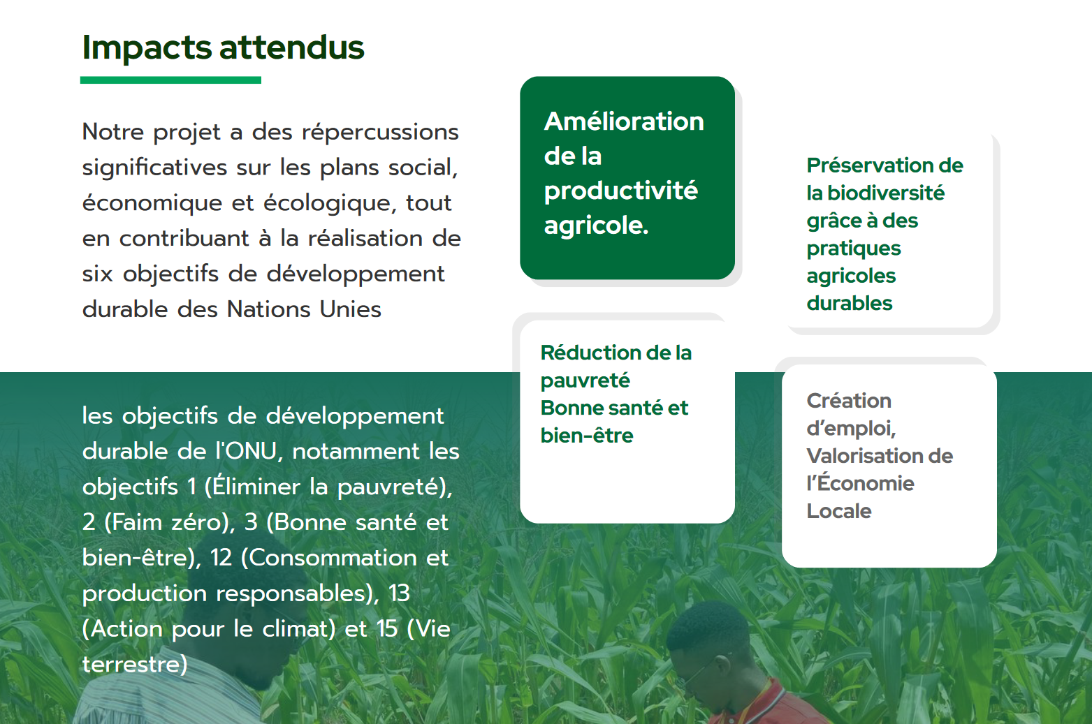 Afin de relever les défis de l'agriculture africaine, nous avons mis en place une tehnologie basée sur l'IA qui permettra aux agriculteurs de mieux suivre leurs champs. Ce projet aide à répondre à pas moins de six (6) objectifs de l'ONU.